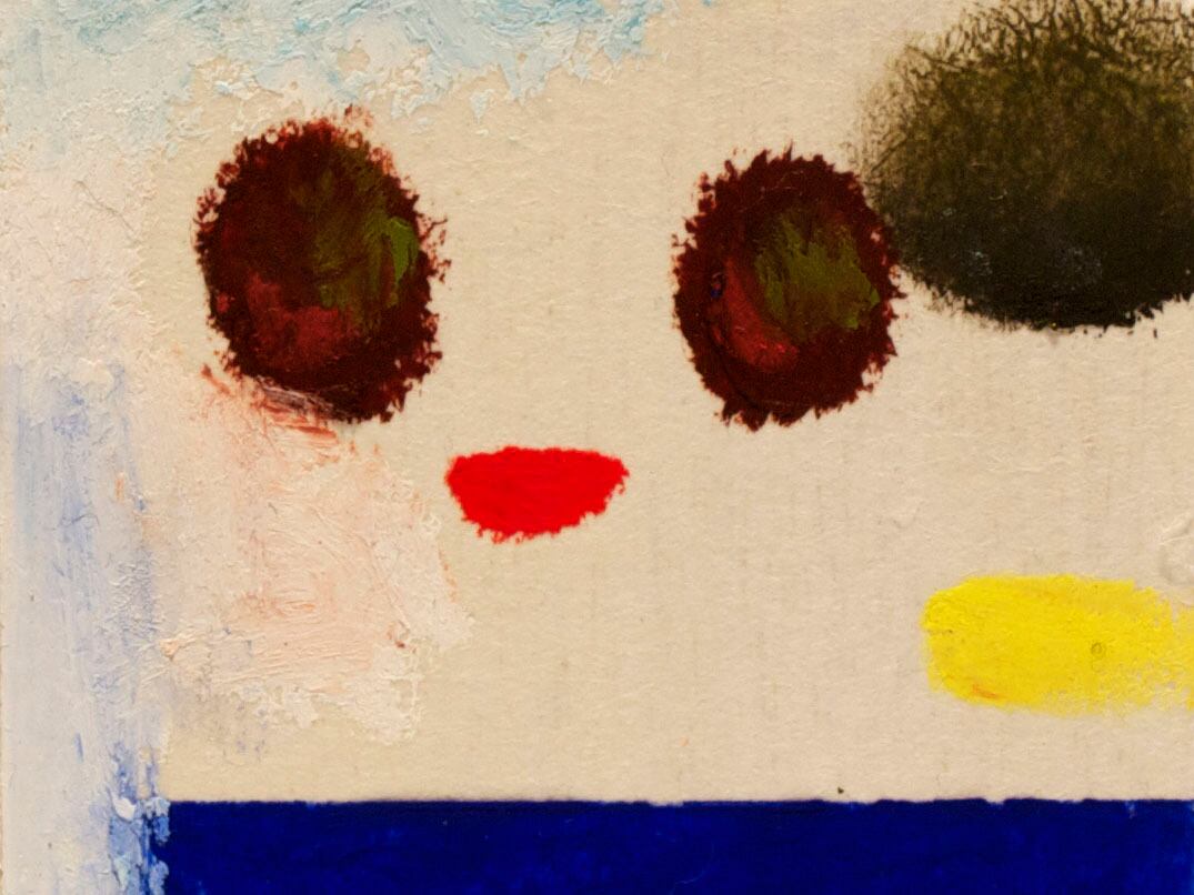 14mm圧の合板を不定形の5角形にカットして、表面に和紙をはりそこに発色のいいセヌリエ・オイルパステルで描きました。小さな作品です。