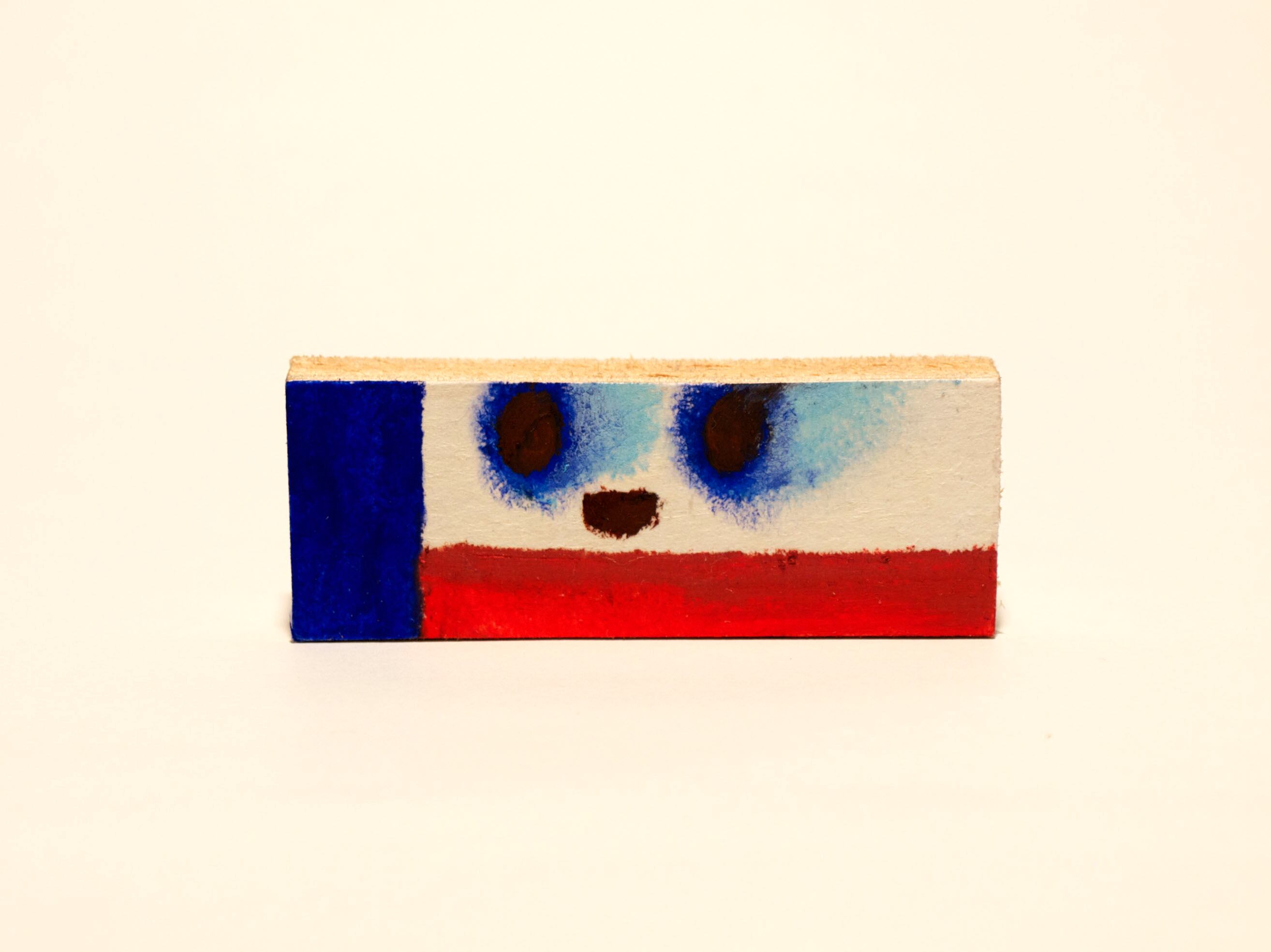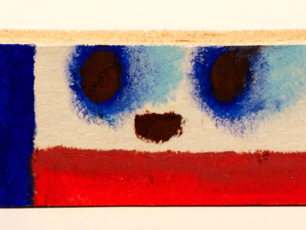14mm圧の合板を不定形の長四角形にカットして、表面に和紙をはりそこに発色のいいセヌリエ・オイルパステルで描きました。小さな作品です。